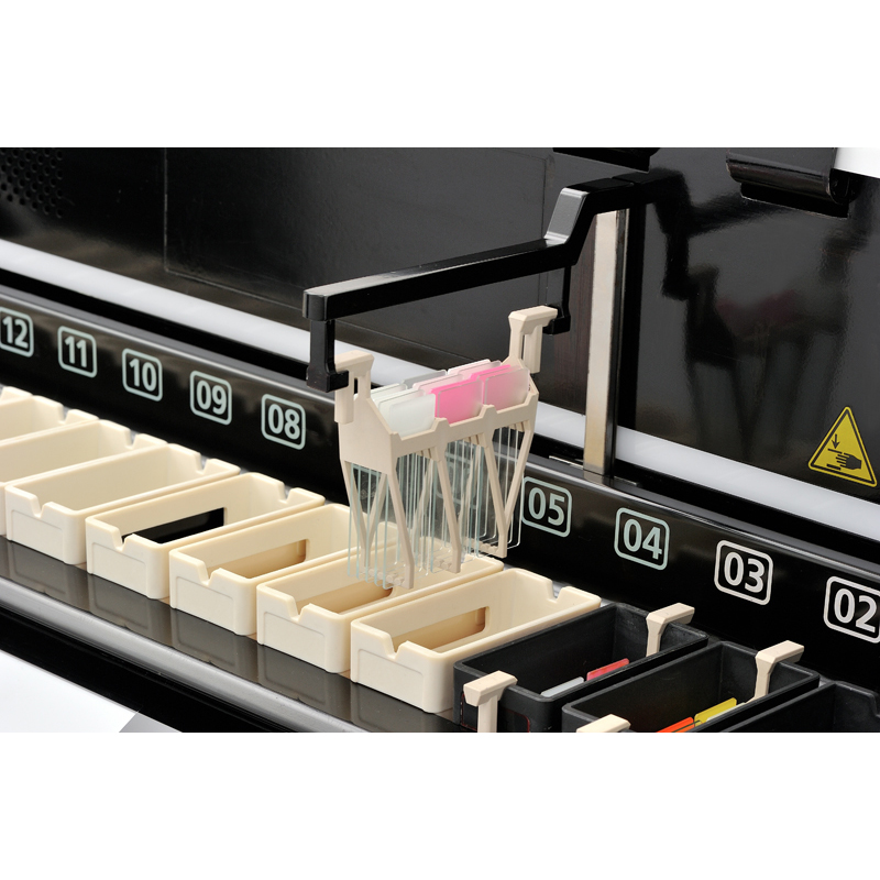 ◇ 帶有有攪拌功能,可開啟或關(guān)閉,多染架并行依次運(yùn)行,疏水性提籃,機(jī)構(gòu)獨(dú)特,全球首創(chuàng),帶液少,有效提高試劑使用率。