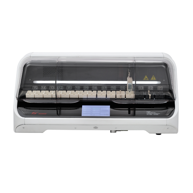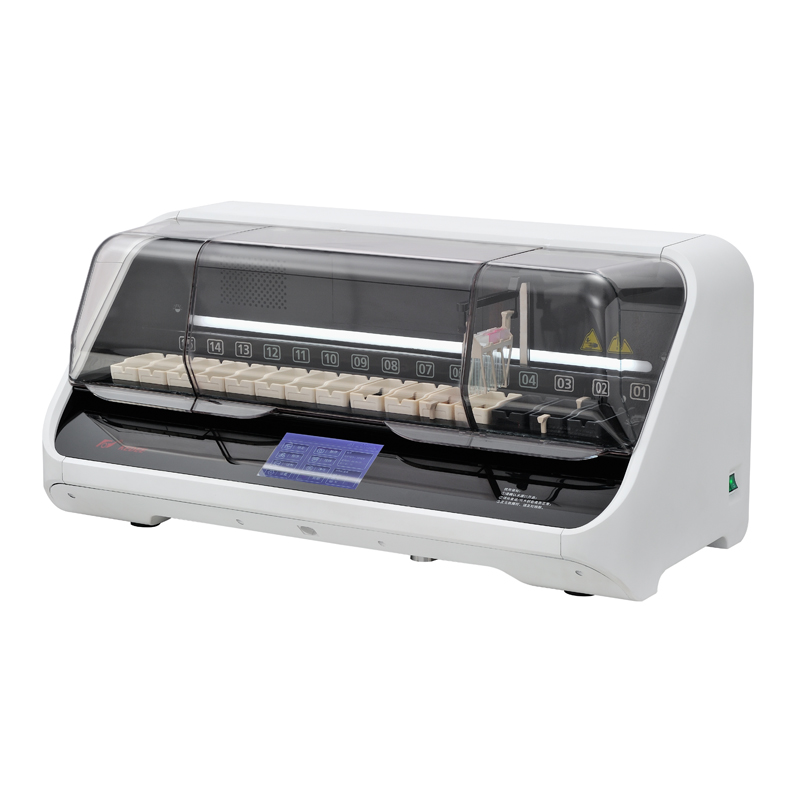 ◇ 帶有有攪拌功能,可開啟或關(guān)閉,多染架并行依次運(yùn)行,疏水性提籃,機(jī)構(gòu)獨(dú)特,全球首創(chuàng),帶液少,有效提高試劑使用率。