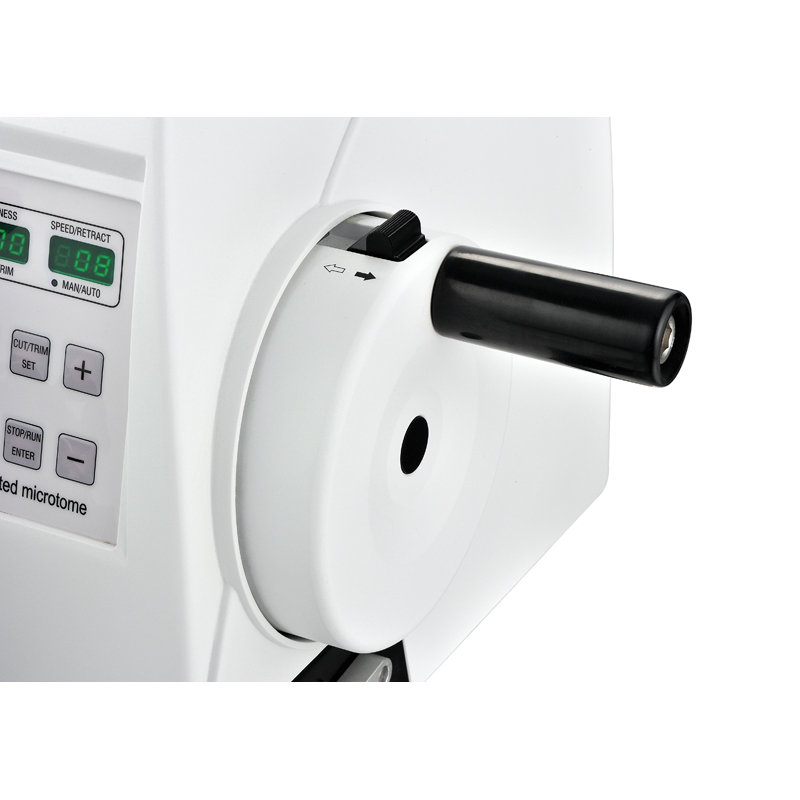 ◇ 手輪平衡精細(xì)調(diào)節(jié)系統(tǒng),在任意位置鎖定,保證切片過程的安全,定位自如